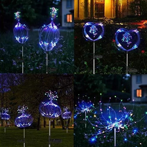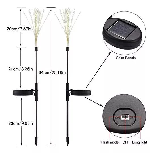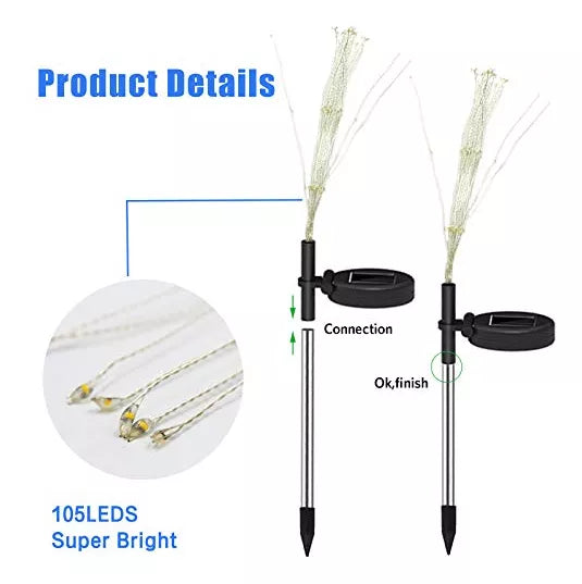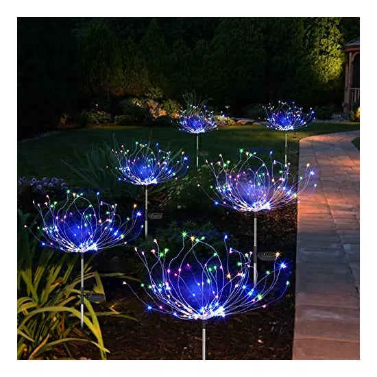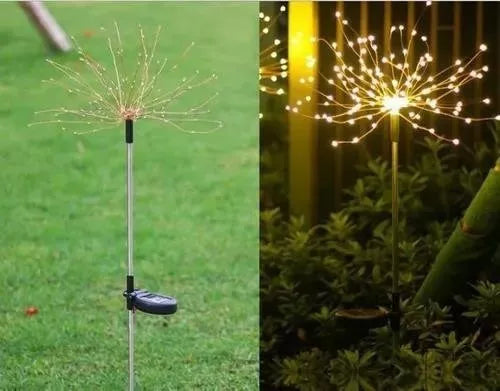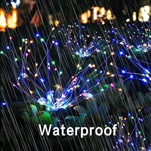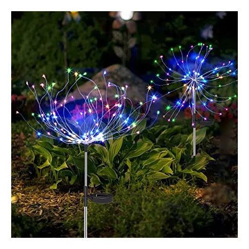 Luces solares de jardín, 2 PCS Luz de fuego artificial solar al aire libre Luz de paisaje DIY, IP65 Luces solares impermeables al aire libre decorativas, para jardín patio patio cumpleaños boda fiesta de Navidad (multicolor)Energía solar: Durante el día, los paneles solares pueden recoger la luz solar en la batería recargable Ni-MH durante 4-6 horas y se pueden encender durante 10-12 horas por la noche. Hecho con cables de cobre duraderos y bombillas LED 105 de baja emisión de calor, no se rompe fácilmente ni se sobrecalienta después de usarlo varias horas. Larga vida útil con bajos costos de energía.DIY Shape Starburst Light: Se puede usar no solo de manera flexible, sino que también se puede doblar en cualquier forma de acuerdo con su estado de ánimo, y no es fácil de romper y tiene alta seguridad, peso ligero, tamaño pequeño, sin juntas de soldadura y almacenamiento conveniente.Luces con opciones: 2 modos (modo de encendido fijo/flash disponible) para usar . Cuando el botón está 'apagado', siempre está encendido, cuando está 'encendido', está parpadeando, y en medio de "apagado" y "encendido" está apagado. Puede configurar el modo estable o flash para decorar su jardín, bar, restaurante, fiesta, arreglo de boda para crear un ambiente festivo y romántico.IP65 a prueba de agua: resiste todo tipo de clima, incluidas las fuertes lluvias y las fuertes nevadas, la decoración al aire libre y las luces solares de alta calidad LED para fuegos artificiales brillantes y coloridas. Duradero, respetuoso con el medio ambiente, confiable, sin cable de alimentación, sin electricidad, sin consumo de energía tradicional y resistente a la corrosión.Calidad excepcional.